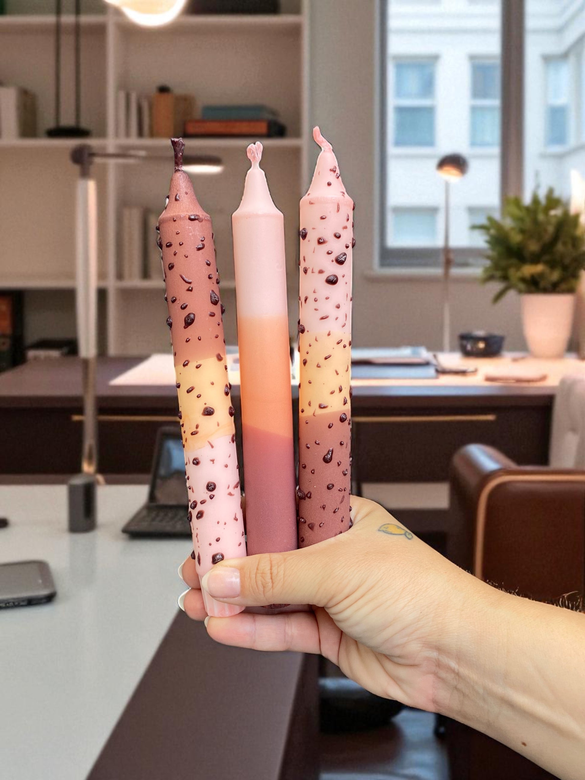 El yapımı sütun mum setimizle mekanınıza yumuşak, romantik bir ışıltı katın.